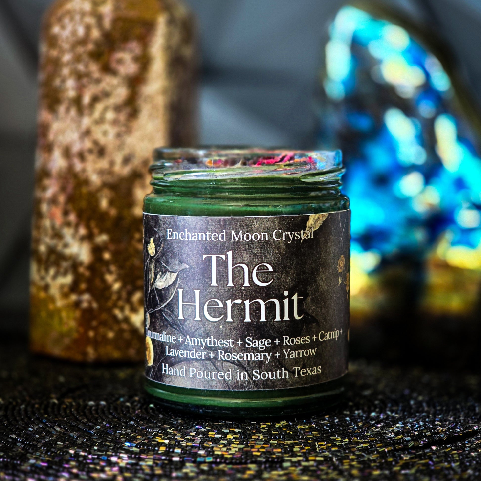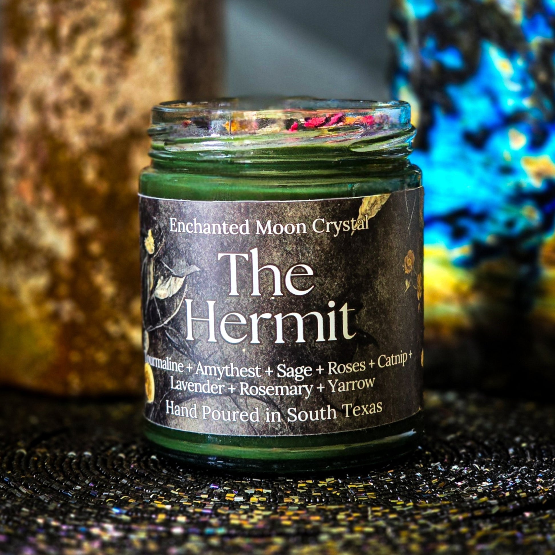 π Embrace the wisdom of introspection with our Hermit Candle, inspired by the profound insights of Carl Jung. This candle is topped with protective tourmaline and tranquil amethyst, along with roses, yarrow, rosemary, sage, and lavender to foster a serene atmosphere perfect for inner reflection and spiritual growth.