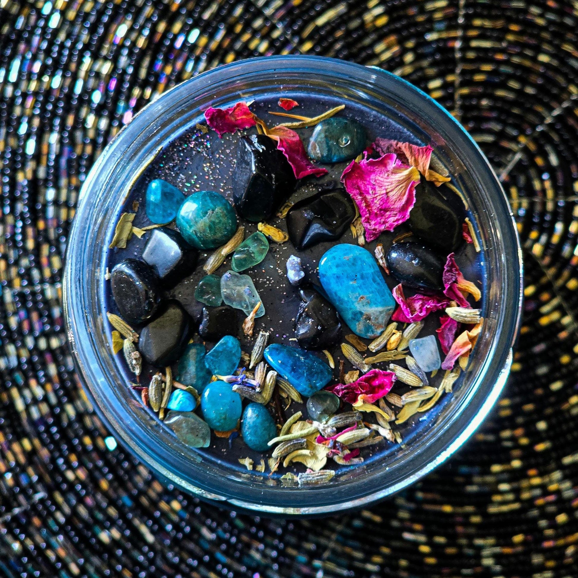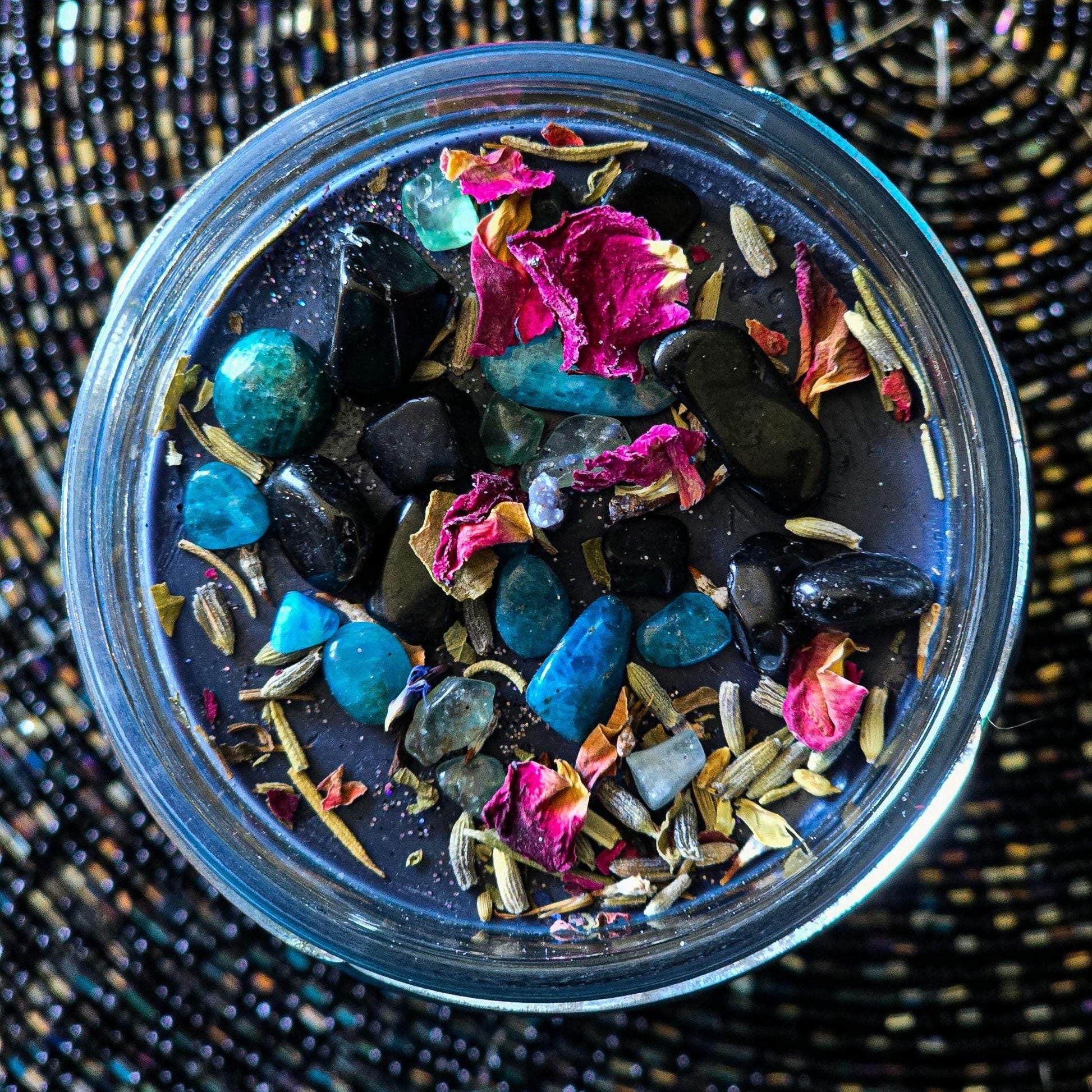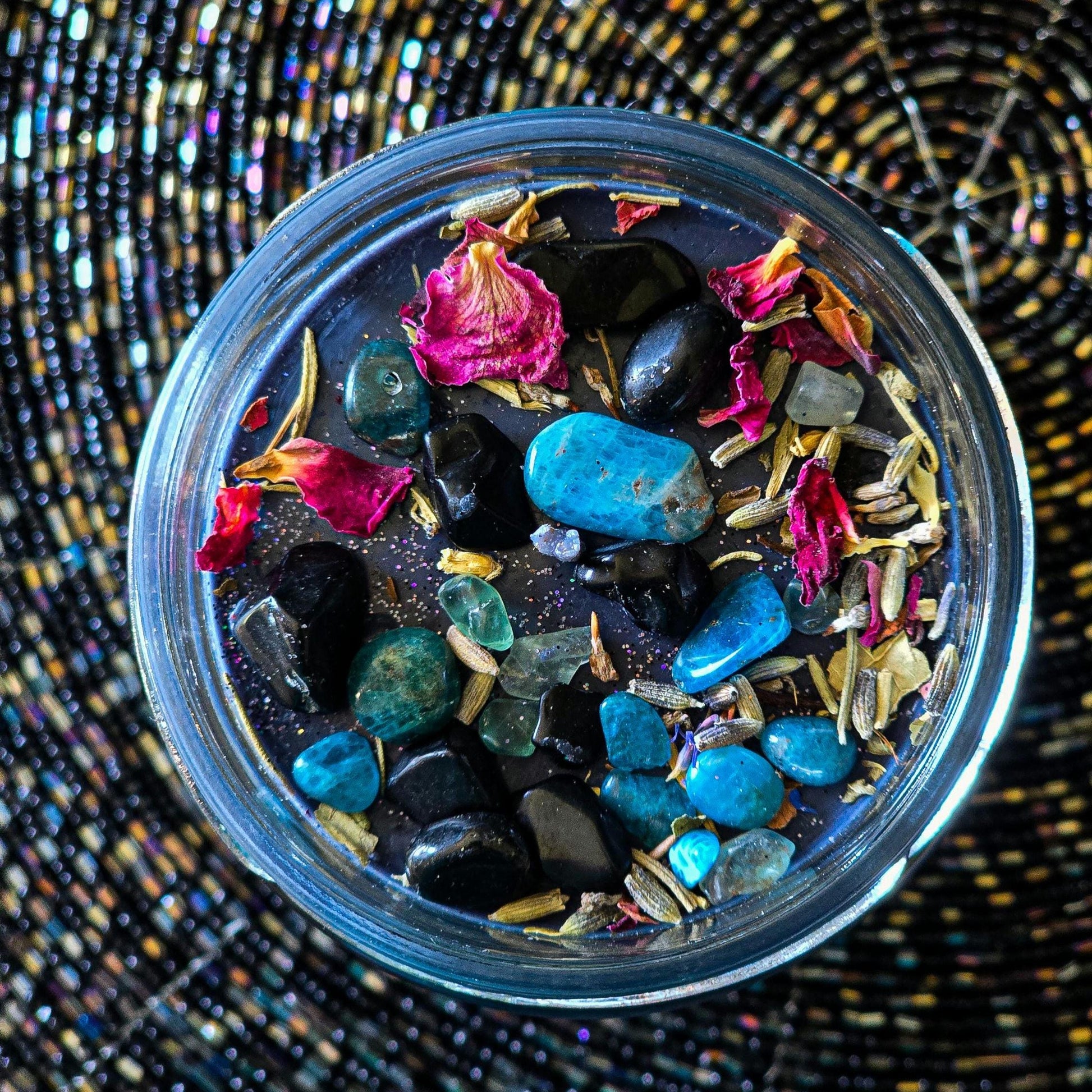 ๐ Topped with a potent combination of obsidian, blue apatite, yarrow, roses, catnip, lavender, jasmine, nettle, and cornflower, each element has been carefully selected to amplify your ability to influence the elements. The fresh scent is enriched with the invigorating notes of orange, eucalyptus, and cedarwood essential oils, creating an atmosphere of mystical potency and focus.